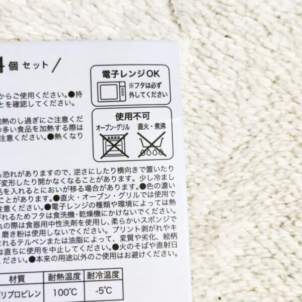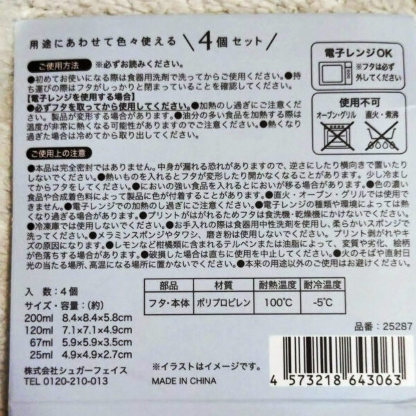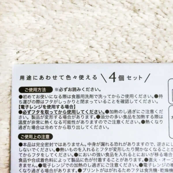 フードコンテナの4個セットは、冷蔵保存用でフタをとってレンジ加熱